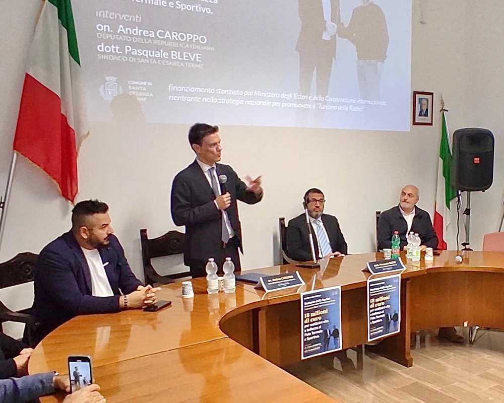 È con queste parole l’on. Andrea Caroppo, vicepresidente della Commissione Trasporti della Camera dei Deputati, ha annunciato nella conferenza stampa tenuta assieme al sindaco di Santa Cesarea Terme Pasquale Bleve, l’arrivo di 18 milioni di euro destinati al recupero e al rilancio del Polo Termale Sportivo di Santa Cesarea Terme, la più grande opera incompiuta del Salento, in stato di abbandono da quasi 25 anni.