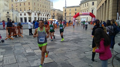 I concorrenti partiti dal cuore di Lecce hanno attraversato un percorso di 11 chilometri carico di fascino e che li ha condotti da Porta Rudiae fino alla marina di San Cataldo attraversando i luoghi più belli della città: Porta Napoli, piazza Duomo e la basilica di Santa Croce, vero e proprio simbolo del barocco salentino. Poi gli atleti hanno percorso il lungo rettilineo che loi ha condotti fino al Faro di Adriano nella marina. Poi il ritorno in città (per l’occasione chiusa al traffico) passando dalla stadio di Via del Mare, fino a tornare in piazza Sant’Oronzo e tagliare il traguardo sotto lo sguardo vigile del Santo Patrono.