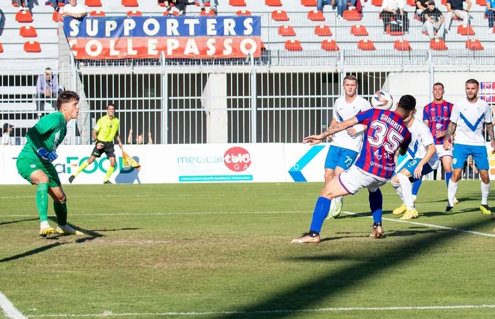 I Rossoazzurri riescono a colpire su punizione di Logoluso e colpo di testa sottomisura del solito Saraniti.