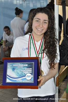 Per il Titolo Italiano nei 200 dorso, la medaglia d’argento nei 100 dorso e la prestigiosa medaglia d’argento a Malta con la maglia azzurra della Nazionale Giovanile in staffetta, sul podio internazionale della Coppa Comen-Mediteranean Cup, è stata premiata Alba Mariachiara 2003 di Brindisi, allenata da Maurizio Vilella presso la Piscina Comunale Masseriola. Tra le eccellenze targate Fimco Sport si piazza a pieno titolo Simone Stefanì, per i podi italiani con tre argenti (50 e 100 dorso e 200 misti) ed un bronzo (100 farfalla) tutti conquistati ai Criteria di Riccione lo scorso mese di marzo. l’atleta di Castrignano dei Greci, classe 2000, è allenato alle Piscine Comunali di Maglie dal tecnico Giovanni Gigante.
