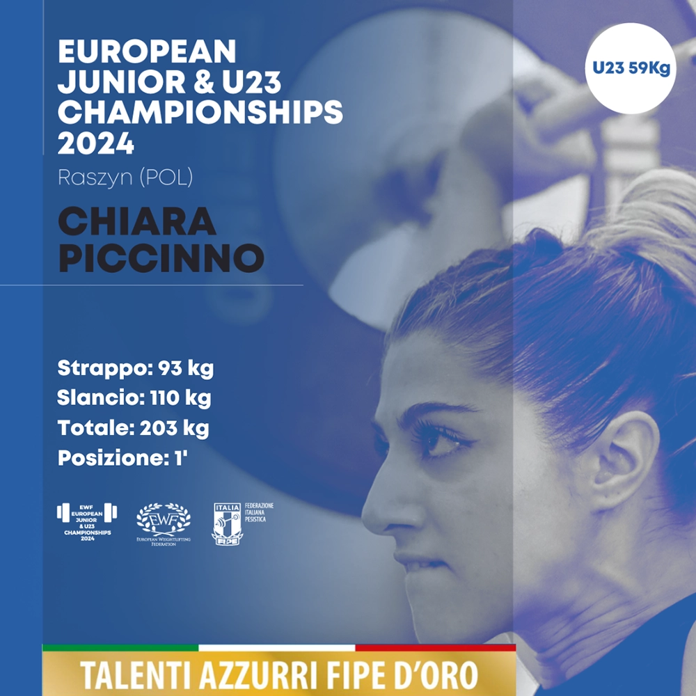 La Piccinno è infatti l’ultima a salire in pedana in entrambe le specialità, con tutte le avversarie abbondantemente dietro di lei: per la pugliese 93 kg di strappo in seconda prova, dopo la prima a 88.
