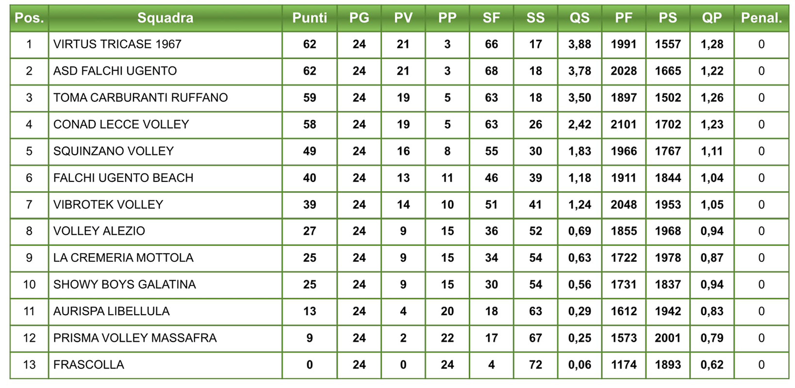 21 partite vinte su 24 e 66 set vinti e appena 16concessi all’avversario le hanno consentito di giocarsi i play off per la Serie B contro il Cus Bari.