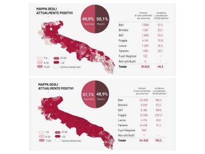 Registrati oggi 9.347 test per l’infezione da Covid-19 e 945 casi positivi: 315 in provincia di Bari, 66 in provincia di Brindisi, 81 nella provincia BAT,...