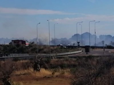 Incendio in mattinata a Lucugnano (Tricase) sulla strada statale 275. Le fiamme sono divampate all’interno della famigerata rotatoria nei pressi della zona industriale di Specchia, Miggiano...